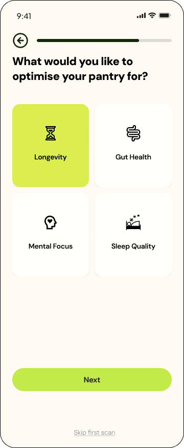 Leading the design of GVO's food scanning MVP, crafting an intuitive UX to maximises engagement and Product-Market-Fit.